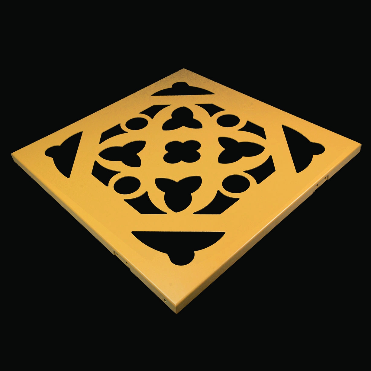 艺术雕刻铝板凭着先进的生产技术设备,追求精致完美,力求成为个性化和艺术化的新一代主流产品。环保无毒,完全防火款式多化,图案可根据个人风格定做,尽显个性化;表面雕刻体感强;抗静电不吸尘且容易清洗等。且安装简单、易装易拆、维修方便。将龙骨按水平线吊装好,把板扣上去即可,每块板都是独立的,铝板固定于龙骨扣齿上并可以单独拆卸,保养筒便。